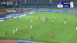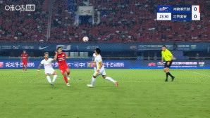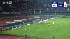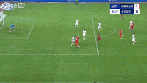 第20分钟,河南左路传中,钟义浩后点凌空敲门放了高射炮。↓