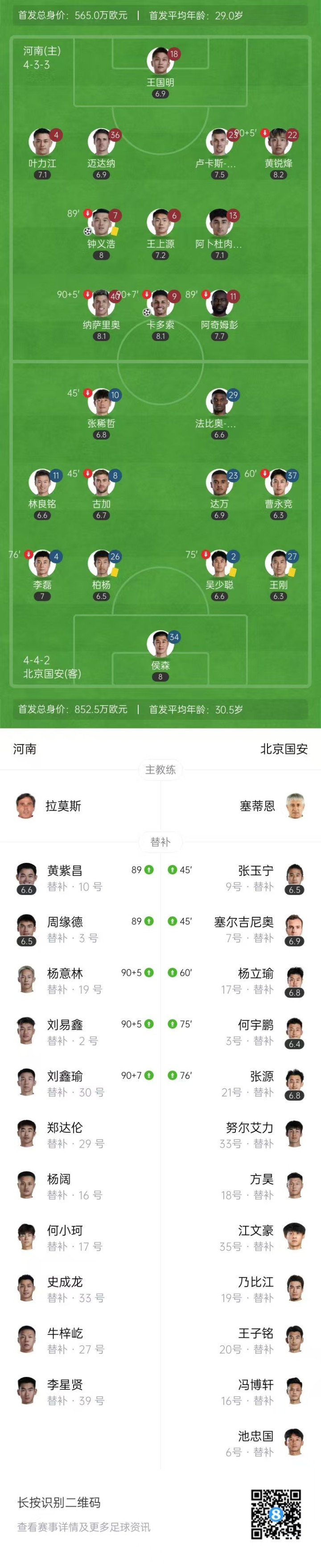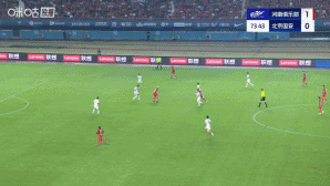 第39分钟,河南左路突破横传制造禁区紊乱,钟义浩乱战中将球打进,随后他脱衣庆祝,河南1-0北京国安。↓