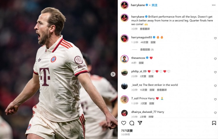 凯恩也在赛后通过社媒晒出我方的比赛照,并配文:“全队交出精彩阐述,莫得比这更棒的客场次回合了。八强战咱们来了!”